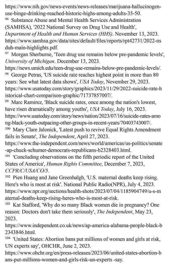 美國婦女兒童權(quán)利長期遭受系統(tǒng)性侵犯,保障性別平等的憲法規(guī)定付之闕如,至今未批準(zhǔn)聯(lián)合國《消除對婦女一切形式歧視公約》,而且是聯(lián)合國會員國中唯一沒有批準(zhǔn)《兒童權(quán)利公約》的國家。美國參議院2023年4月否決了保障性別平等的憲法修正提案。美國每年約有5.4萬名婦女因遭受懷孕歧視而失業(yè)。超過220萬育齡婦女無法獲得產(chǎn)科護(hù)理。至少有21個州命令禁止或嚴(yán)格限制墮胎。孕產(chǎn)婦死亡人數(shù)近20年來增加了一倍多。職場、校園、家庭等多領(lǐng)域的性暴力層出不窮。兒童的生存權(quán)與發(fā)展權(quán)堪憂。大量兒童被排除出醫(yī)療補助計劃。槍支暴力成為兒童死亡的主要原因。毒品濫用在青少年群體中蔓延。46個州被發(fā)現(xiàn)瞞報約3.48萬例寄養(yǎng)兒童失蹤案件。