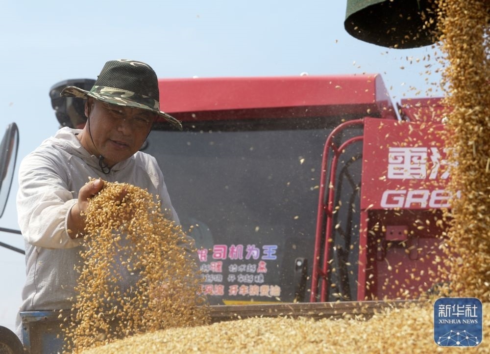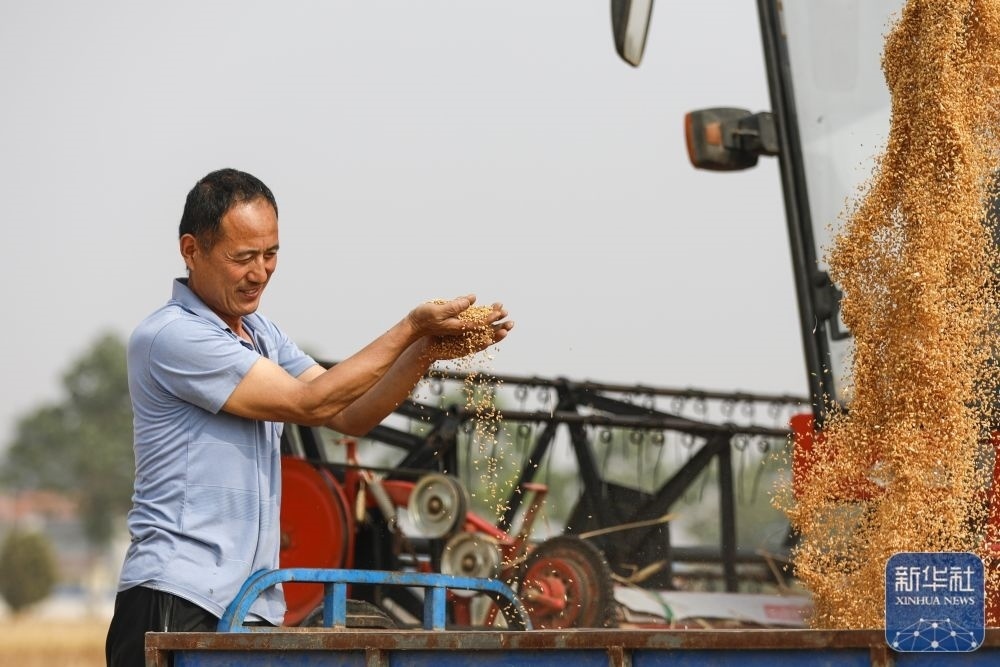 5月26日,河南省開封市尉氏縣邢莊鄉(xiāng)北丁莊村村民丁雙喜在收獲小麥。新華社發(fā)(李新義攝)