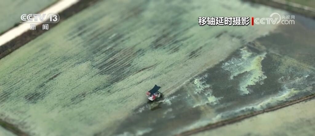 現(xiàn)在您看到的是河南信陽淮河以南的水稻插秧現(xiàn)場(chǎng)。插秧機(jī)在田間穿梭,一株株茁壯的秧苗被整齊有序地植入田間,一會(huì)兒工夫就插滿了整塊稻田??罩懈╊慌_(tái)臺(tái)插秧機(jī)在農(nóng)機(jī)手的操控下好似一把把畫刷,在稻田上輕輕暈染,繪就丹青。而同在信陽,淮河以北的麥田里,則是金色的麥浪翻滾起伏,收割機(jī)馳騁田間,飽滿的麥穗被卷入機(jī)艙,經(jīng)過收割、脫粒,顆粒歸倉。