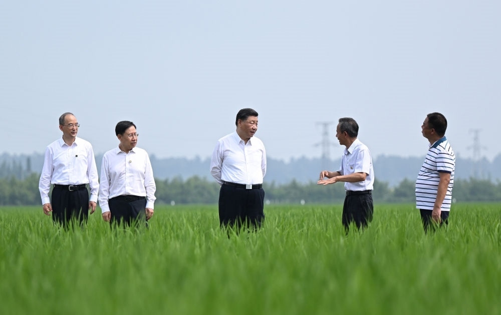 2022年6月8日上午,習近平在四川眉山市東坡區(qū)太和鎮(zhèn)永豐村高標準水稻種植基地考察,了解水稻試驗育種和種植推廣情況。習近平強調(diào):推進農(nóng)業(yè)現(xiàn)代化,既要靠農(nóng)業(yè)專家,也要靠廣大農(nóng)民。要加強現(xiàn)代農(nóng)業(yè)科技推廣應用和技術培訓,把種糧大戶組織起來,積極發(fā)展綠色農(nóng)業(yè)、生態(tài)農(nóng)業(yè)、高效農(nóng)業(yè)。我們有信心、有底氣把中國人的飯碗牢牢端在自己手中。