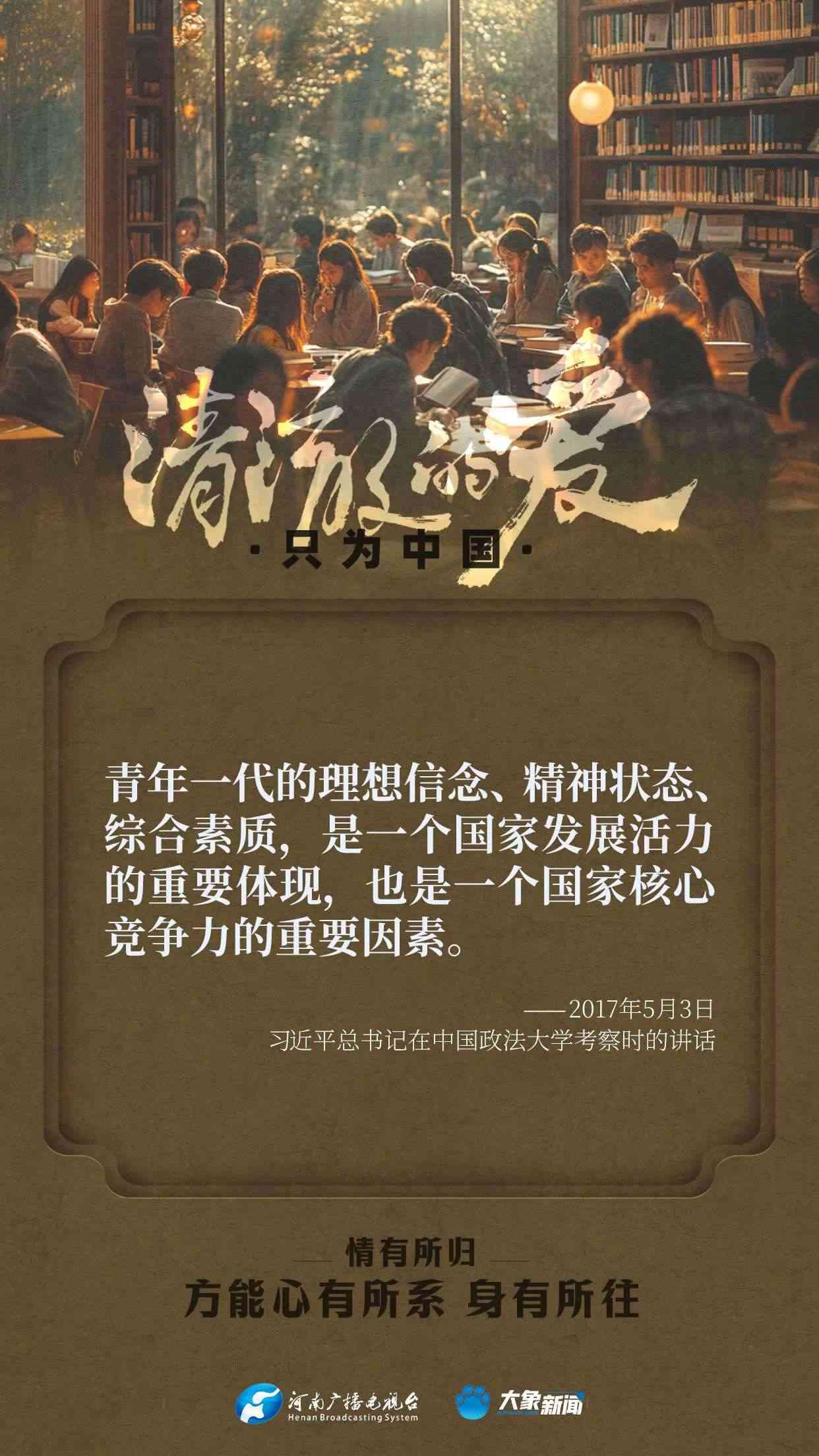 習(xí)近平總書(shū)記對(duì)廣大青年寄予厚望。黨的十八大以來(lái),他多次來(lái)到青年中間,同大家談人生、話理想,鼓勵(lì)青年人心系祖國(guó),志存高遠(yuǎn),腳踏實(shí)地,在奮斗中創(chuàng)造精彩人生,為祖國(guó)和人民貢獻(xiàn)青春和力量。