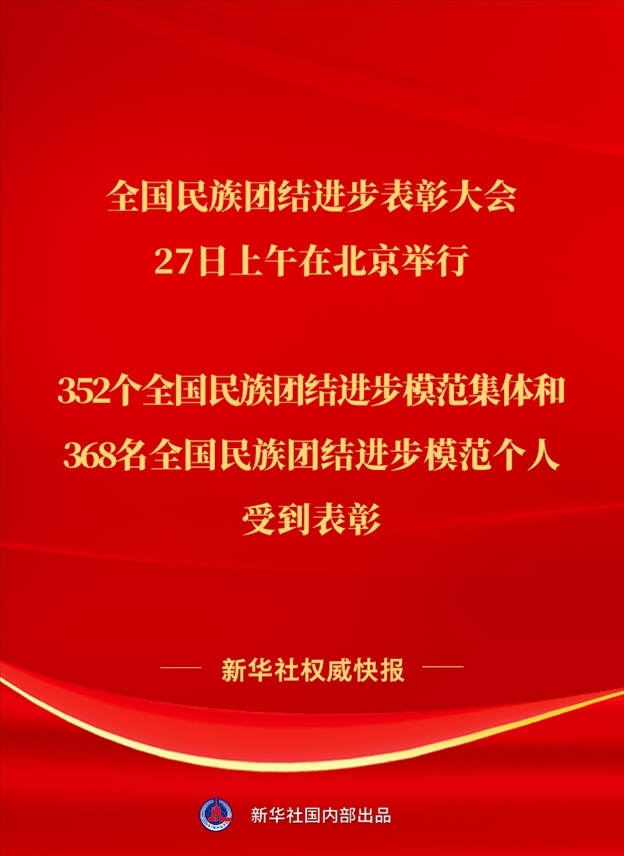 全國民族團結(jié)進步表彰大會27日上午在北京舉行。352個全國民族團結(jié)進步模范集體和368名全國民族團結(jié)進步模范個人受到表彰。各族兒女像石榴籽一樣緊緊抱在一起,推動中華民族成為認同度更高、凝聚力更強的命運共同體。