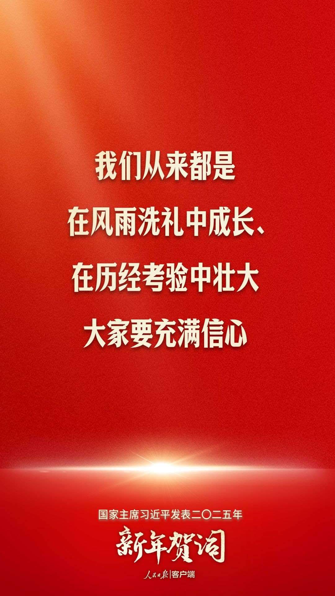 辭舊迎新之際,習(xí)近平主席發(fā)表二〇二五年新年賀詞。自信而溫暖的話語(yǔ),透過(guò)電波和網(wǎng)絡(luò)傳向全世界,一個(gè)堅(jiān)韌不拔、日新月異、欣欣向榮的新時(shí)代中國(guó)躍然眼前。
