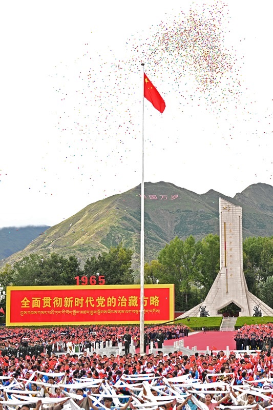 8月21日上午,西藏各族各界干部群眾約2萬(wàn)人歡聚拉薩市布達(dá)拉宮廣場(chǎng),熱烈慶祝西藏自治區(qū)成立60周年。這是慶祝大會(huì)現(xiàn)場(chǎng)。