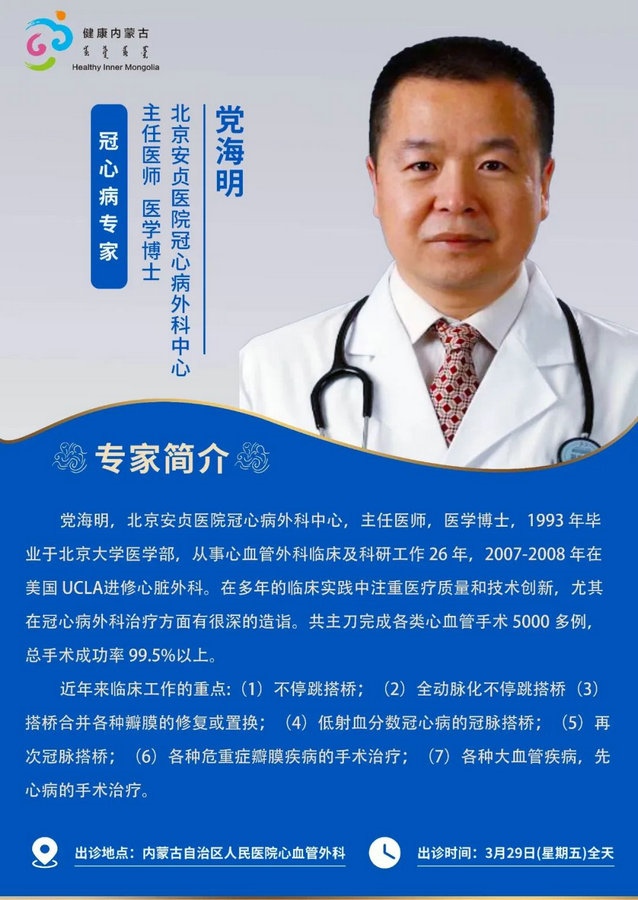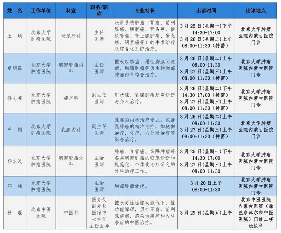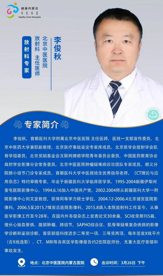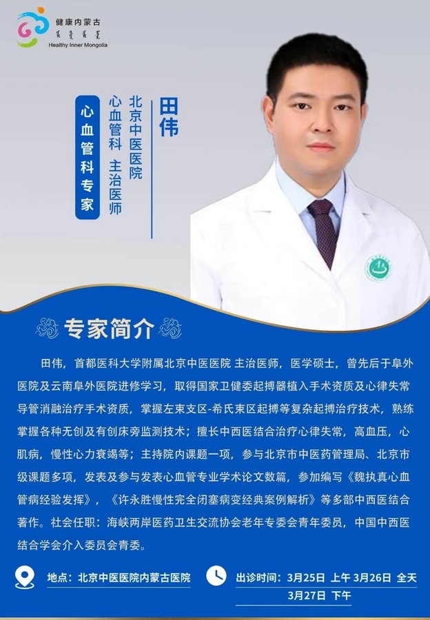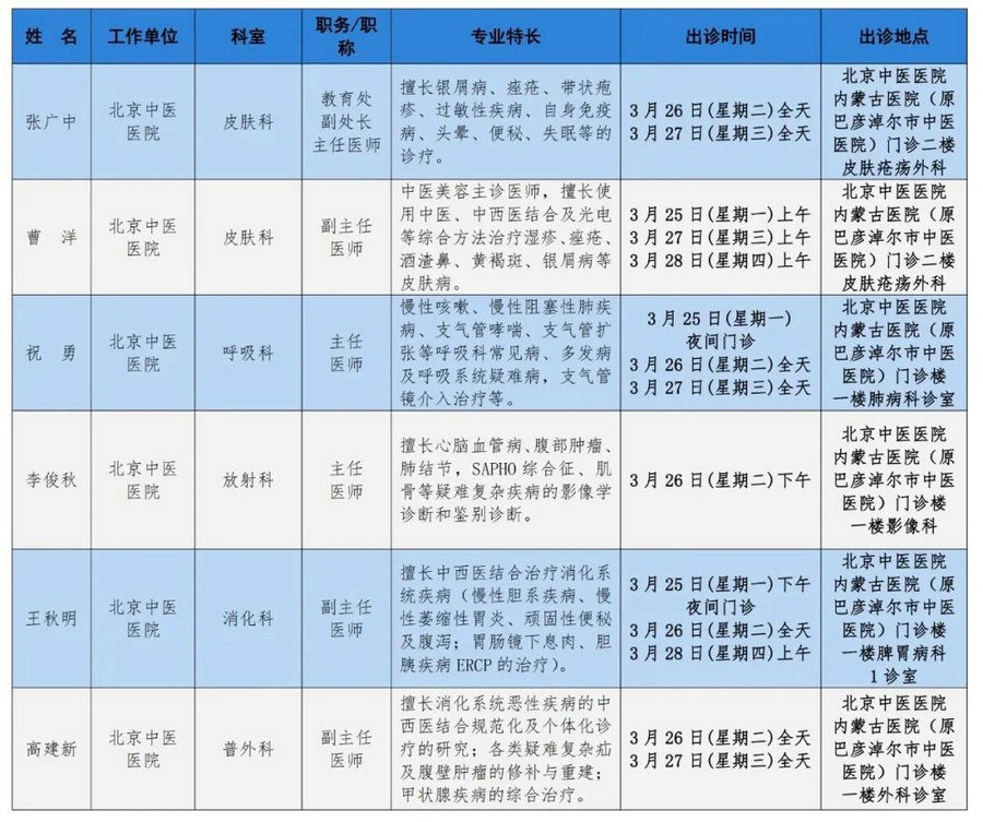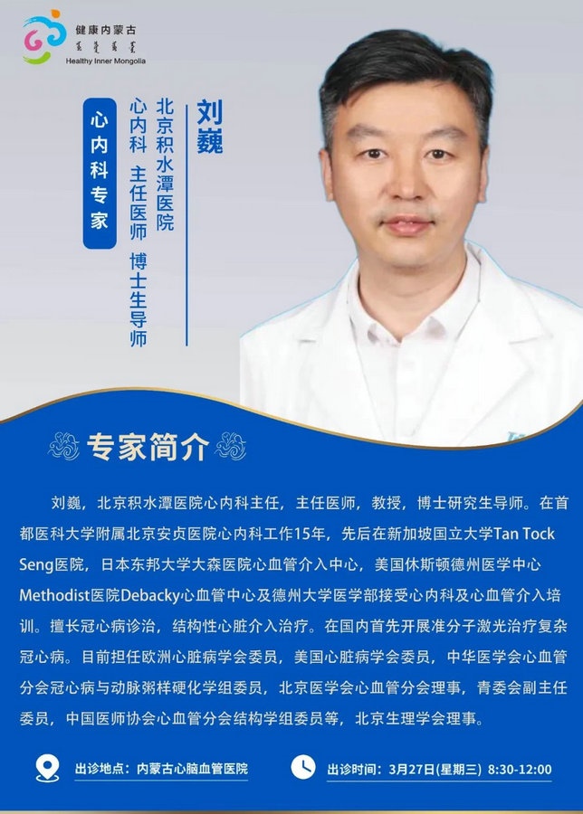 京蒙協(xié)作 政協(xié)助力。每周有北京相關(guān)協(xié)作醫(yī)院專(zhuān)家來(lái)呼和浩特出診,現(xiàn)將本周專(zhuān)家出診信息予以發(fā)布。