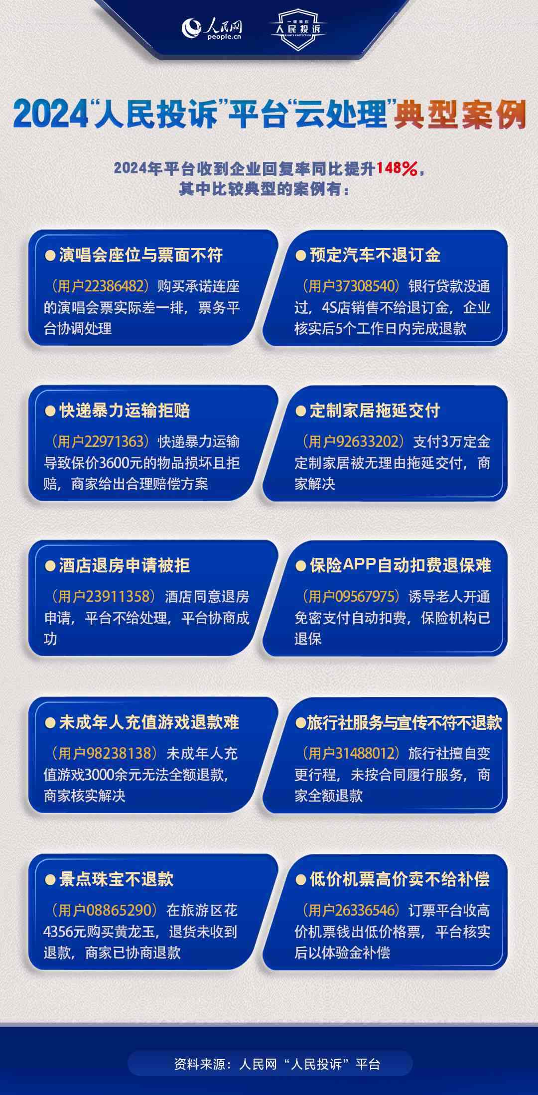 一年來,包含上述典型案例的各消費領(lǐng)域投訴通過“人民投訴”平臺得到了有效解決,消費者實現(xiàn)了高效、高質(zhì)量維權(quán)。