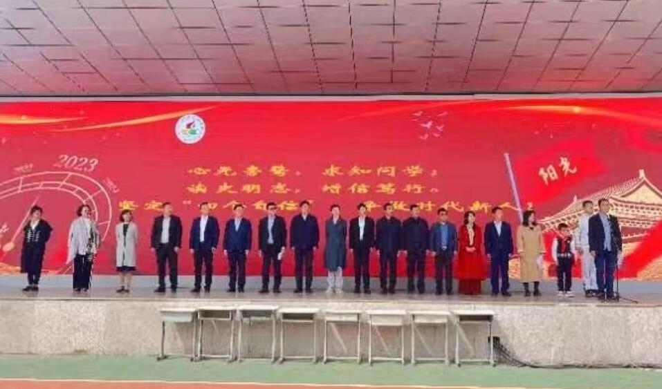 當(dāng)天上午,銅川市耀州區(qū)教育代表團(tuán)一行在北京市八一學(xué)校校長沈軍、黨委書記牛震云等校領(lǐng)導(dǎo)陪同下,參加北京市八一學(xué)校舉行的周一升旗儀式,3000余名師生參加儀式。升旗儀式上,照金北梁紅軍小學(xué)學(xué)生代表和北京市八一學(xué)校學(xué)生代表分別朗誦了習(xí)近平總書記給照金北梁紅軍小學(xué)學(xué)生的回信和給北京市八一學(xué)??破招⌒l(wèi)星研制團(tuán)隊(duì)學(xué)生的回信。耀州中學(xué)、照金紅軍小學(xué)和照金北梁紅軍小學(xué)等5所被幫扶學(xué)校的同學(xué)們,還通過視頻方式向北京市八一學(xué)校的師生們表達(dá)了謝意并送上祝福。中宣部駐耀州掛職干部、銅川市耀州區(qū)委副書記孫進(jìn)軍在升旗儀式上介紹了銅川市耀州區(qū)的紅色歷史、人文資源和自然風(fēng)光,并邀請師生們走進(jìn)耀州、了解耀州、宣傳耀州,祝愿兩地學(xué)生攜手并進(jìn)、學(xué)業(yè)有成。