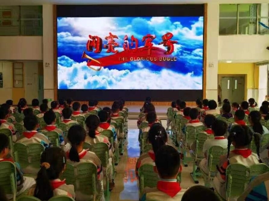 代表團(tuán)為北京市八一學(xué)校小學(xué)部學(xué)生放映電影《閃亮的軍號》