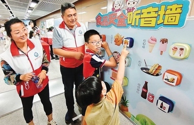 日前,福建省廈門市婦聯(lián)攜手相關(guān)部門舉辦“快樂‘六一’ 安全童行”2023年“六一”體驗(yàn)式生命教育趣味游園活動。圖為小朋友們在參加食品安全聽音墻活動。 徐 林?jǐn)z |