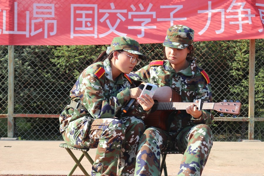 9月13日,內(nèi)蒙古師范大學(xué)國際交流學(xué)院2023級大一新生在軍訓(xùn)間隙,進行才藝表演。一首首嘹亮的歌曲,一段段激昂的彈唱、一曲曲優(yōu)美的舞姿,展現(xiàn)了當(dāng)代大學(xué)生的青春與朝氣。