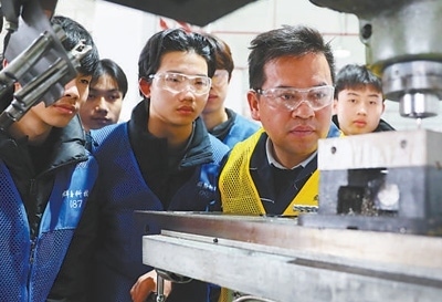 湖南省永州市新田縣產(chǎn)業(yè)開發(fā)區(qū),新田縣職業(yè)中等專業(yè)學校學生在學習機床操作技術(shù)。劉貴雄攝(新華社發(fā))