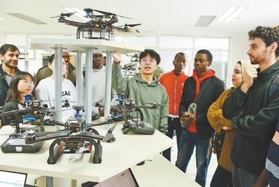 江蘇大學第四屆計算機文化節(jié)上,外國留學生在了解無人機功能和運行原理。石玉成攝(影像中國)