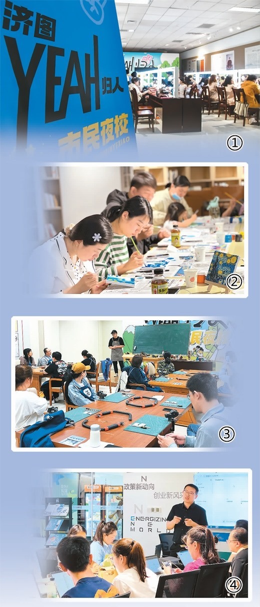 濟(jì)南“‘YEAH歸人’泉民夜?!痹谡n程設(shè)置、校區(qū)布局、師資配備等方面均進(jìn)行了全面提升?!霸黾咏虒W(xué)點(diǎn)后,市民不僅能在專業(yè)機(jī)構(gòu)里上夜校,也能夠在家門口,在熱門文化‘新空間’里就近選擇自己心儀的課程?!睗?jì)南市文化館副館長(zhǎng)張鈞善說。