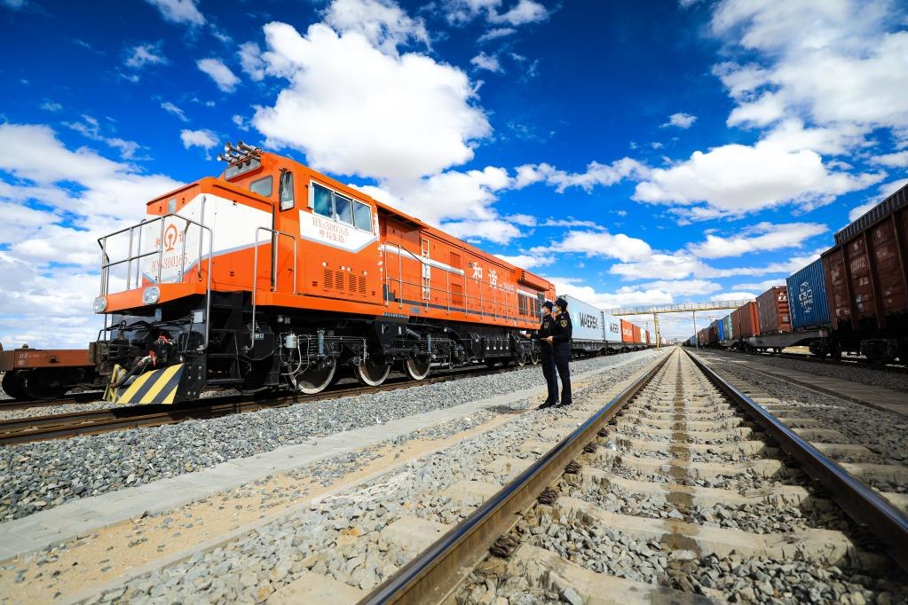 在二連浩特鐵路口岸,二連海關(guān)關(guān)員現(xiàn)場(chǎng)核對(duì)出境中歐班列車輛及集裝箱信息。(受訪者供圖)