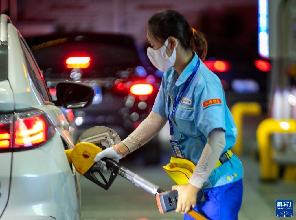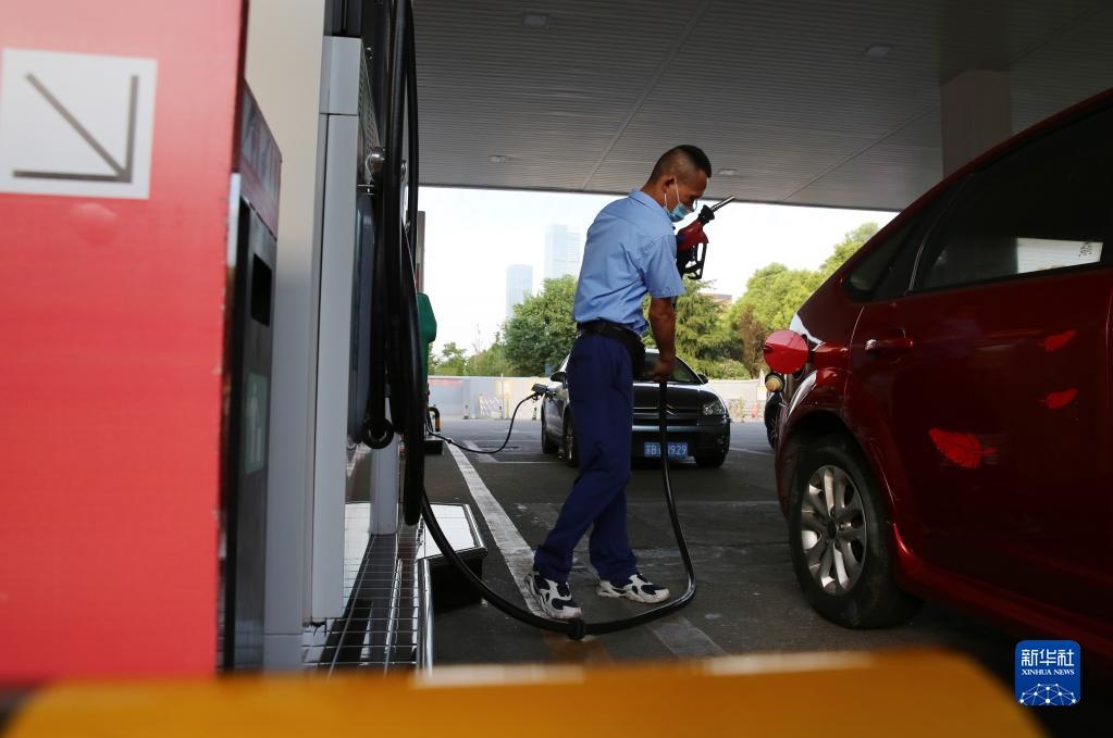 8月9日,江蘇南京一家加油站工作人員給汽車加油。新華社發(fā)(方東旭 攝)