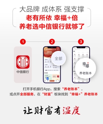 面對萬億規(guī)模個人養(yǎng)老金新藍(lán)海,銀行、基金、保險等各類型金融機(jī)構(gòu),正加速布局。作為國內(nèi)最早推出年長客戶專屬服務(wù)的商業(yè)銀行,中信銀行始終關(guān)注并積極落實(shí)“應(yīng)對人口老齡化”的國家戰(zhàn)略,打造了包含“一個賬戶、一套產(chǎn)品、一個賬本、一套服務(wù)、一支隊伍、一份報告”六大支撐的養(yǎng)老金融服務(wù)體系,并推出“幸福+”養(yǎng)老賬本一站式養(yǎng)老金融服務(wù)平臺,以實(shí)際行動響應(yīng)國家號召、履行社會責(zé)任、助力第三支柱個人養(yǎng)老金制度實(shí)施落地。