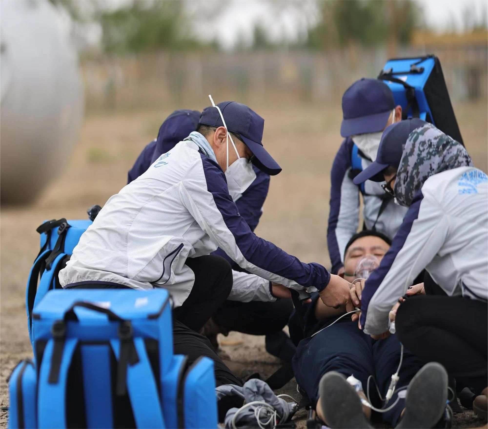 航天員在軌時(shí)間長,著陸場地質(zhì)條件復(fù)雜,這一系列情況導(dǎo)致傷情出現(xiàn)概率增加,醫(yī)療救護(hù)困難加大,必須苦練醫(yī)療救護(hù)技能,及時(shí)到達(dá)、迅速診斷、有效處置。
