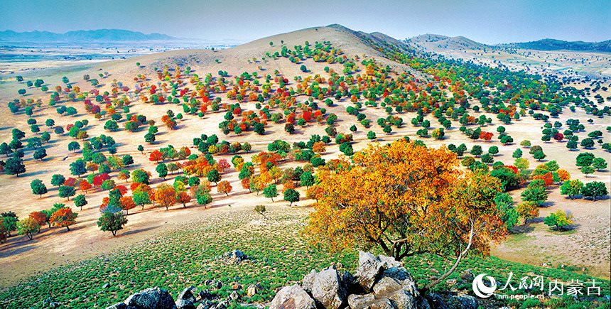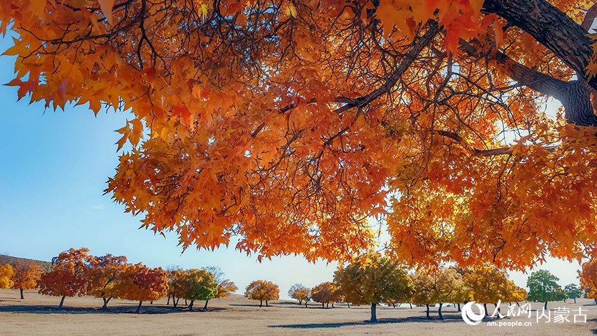 多彩絢麗的五角楓林。科右中旗委宣傳部供圖