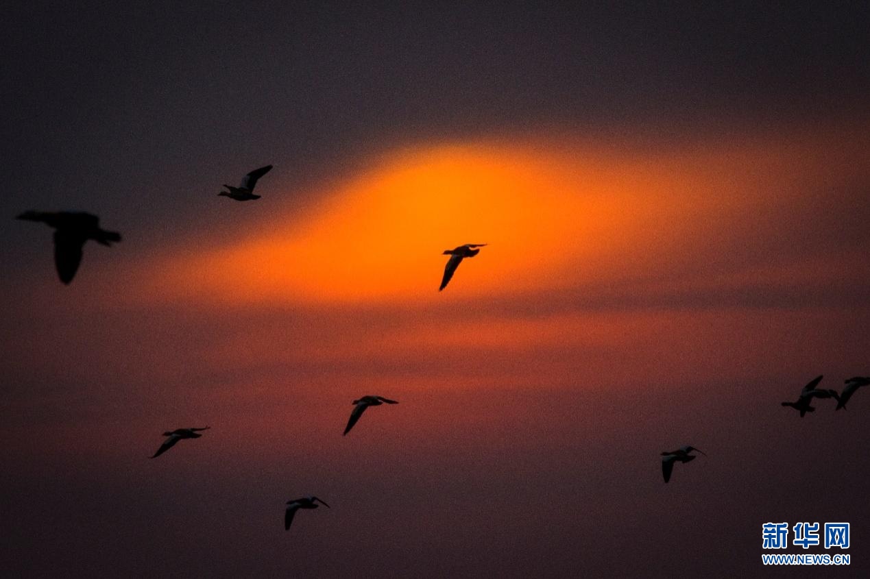 候鳥(niǎo)與夕陽(yáng)。新華網(wǎng)發(fā)(董靜 攝)