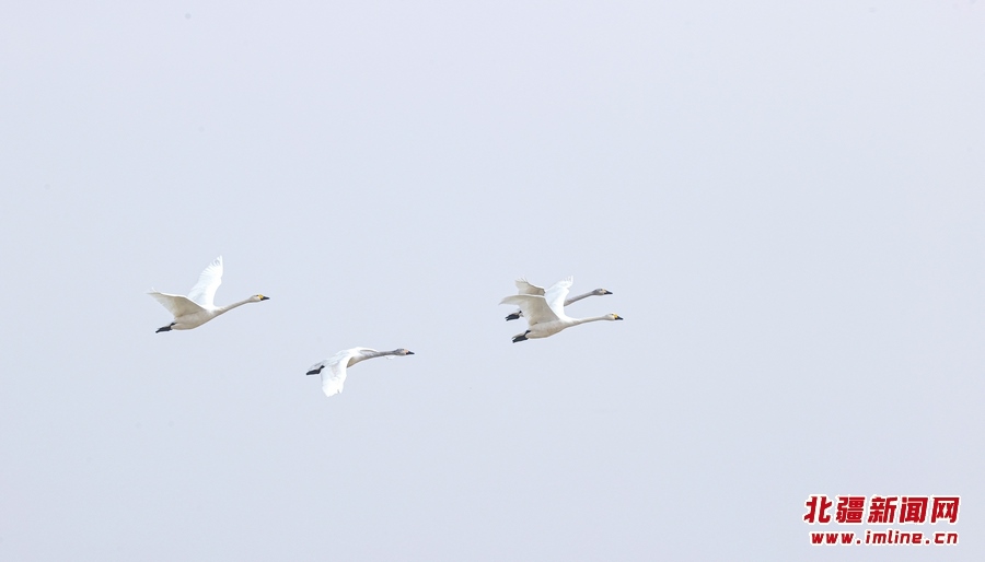 3月11日,幾只天鵝從黃河呼和浩特托克托縣段上空飛過(guò)。近日,隨著北方氣溫逐漸回升,黃河托克托縣段冰河加速開(kāi)河。 樂(lè)炎攝影報(bào)道
