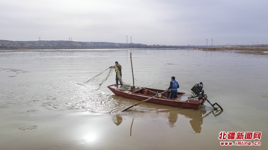 3月11日,黃河呼和浩特托克托縣段,漁民捕撈開(kāi)河魚(yú)。近日,隨著北方氣溫逐漸回升,黃河托克托縣段冰河加速開(kāi)河。 樂(lè)炎攝影報(bào)道
