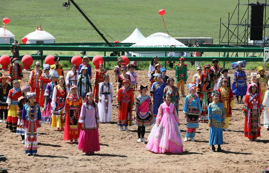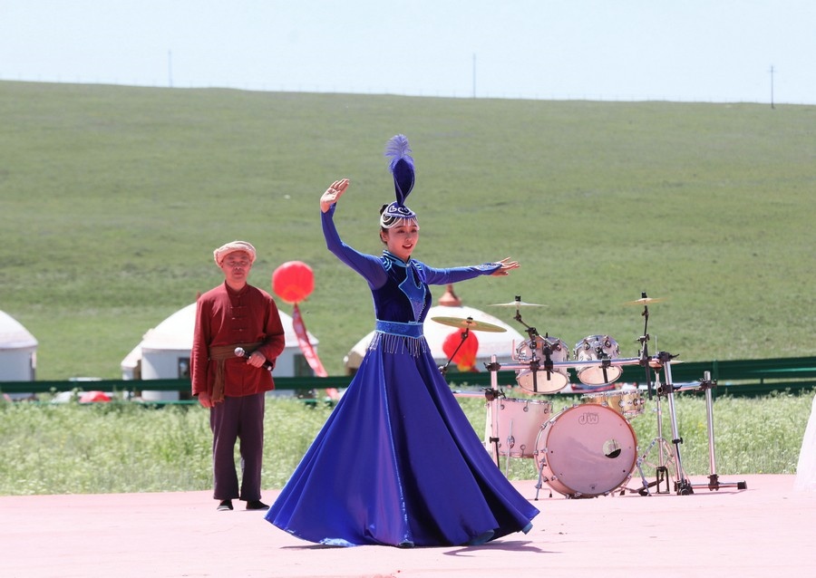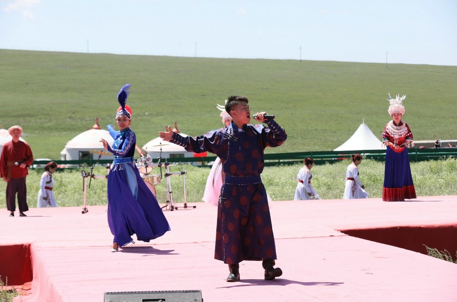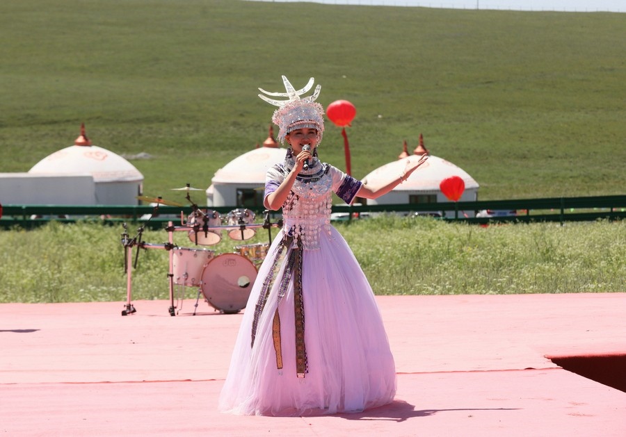伴著悠揚(yáng)的歌聲,踏著激昂的步伐,在旗幟方隊的引領(lǐng)下,哈達(dá)方隊、民族方隊、烏蘭牧騎方隊、牧馬人方隊、裁判員及運(yùn)動員方隊依次走進(jìn)會場。隨著彩煙燃放,氣球升空,那達(dá)慕在梅林組合的歌曲《歡騰那達(dá)慕》中拉開帷幕。隨后,歌伴舞《石榴花開》等節(jié)目輪番登場,現(xiàn)場觀眾掌聲雷動,讓來自全國各地的游客在紅石崖高山牧場領(lǐng)略了草原的柔情。