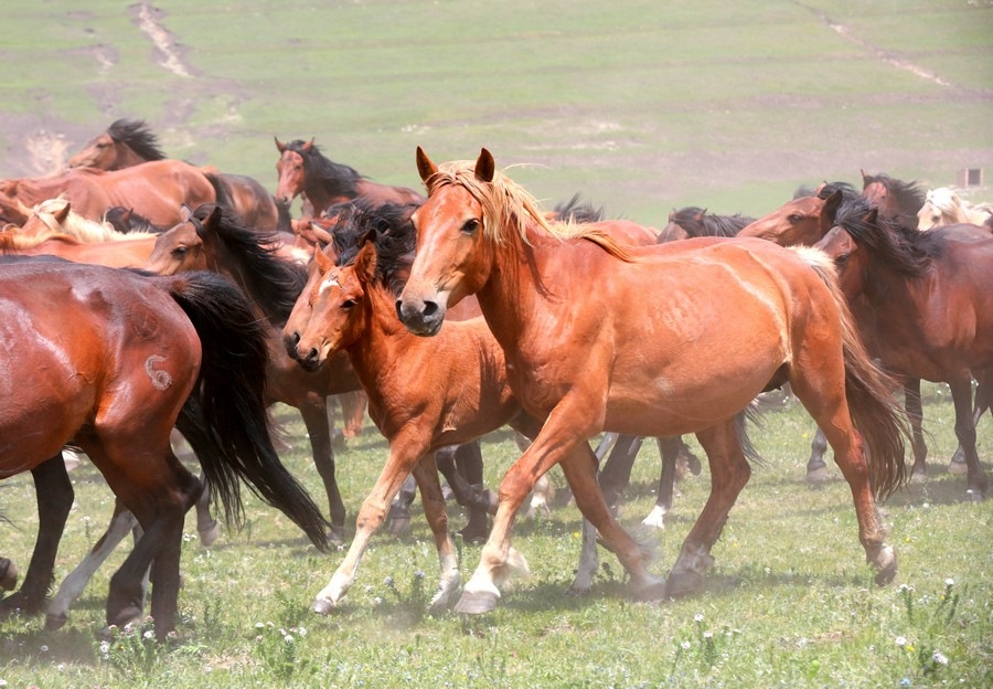 活動(dòng)現(xiàn)場(chǎng)尤為引人注目的還有“萬(wàn)馬奔騰”表演,只見(jiàn)騎手們頭纏彩巾,揚(yáng)鞭策馬,他們身旁,近萬(wàn)匹馬兒在騎手的驅(qū)趕下奔馳而來(lái),馬蹄聲下草原上揚(yáng)起陣陣沙塵,十分壯觀。