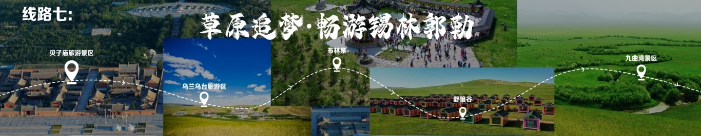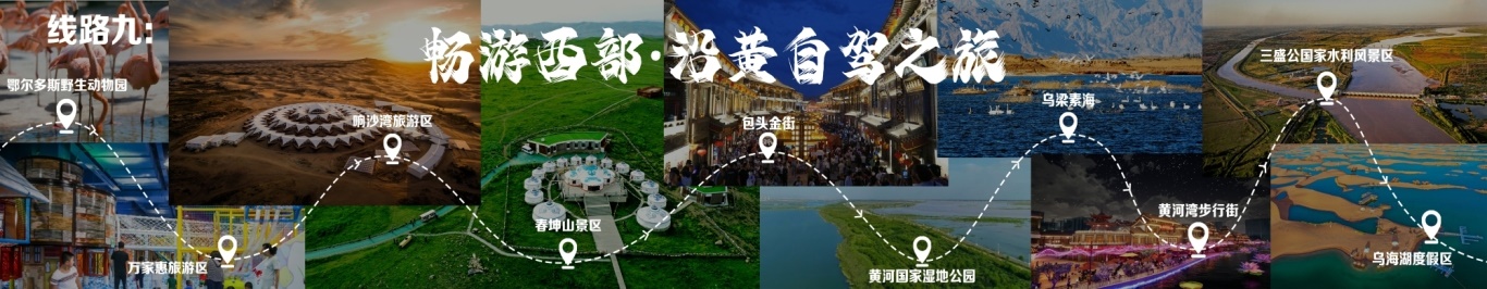 “一城看北疆?大美青城”四日游 行程由呼和浩特出發(fā),至哈達門高山草原旅游區(qū),至莫尼山非遺小鎮(zhèn),至大召歷史文化旅游區(qū),再至昭君博物院,再至奧威馬文化生態(tài)旅游區(qū),再至蒙草草博園,再至老牛坡紅色文化旅游區(qū),終點為老牛灣黃河大峽谷旅游區(qū)。 線路二 “醉美草原·呼倫貝爾”五日游 線路行程由海拉爾出發(fā),至呼倫貝爾大草原·莫爾格勒河景區(qū),至烏蘭山,至額爾古納濕地,再至白樺林,再至呼和諾爾旅游區(qū),終點為呼倫貝爾古城旅游休閑街區(qū)。 線路三 “邊境風情·環(huán)興安嶺自駕之旅”四日游 線路行程由烏蘭浩特出發(fā),至翰嘎利湖休閑旅游度假區(qū)出發(fā),再至紅花爾基樟子松林國家森林旅游區(qū),再至諾干湖旅游度假區(qū),再至扎賚諾爾猛犸旅游區(qū),終點為滿洲里市中俄邊境旅游區(qū)。 線路四 “森林溫泉·阿爾山度假”三日游 線路行程由阿爾山出發(fā),至鹿角灣溫泉度假營地,至世界地質公園博物館,至中國溫泉博物館,再至氧心森林浴道,再至圣泉廣場,再至青坊酒吧,再至阿爾山國家森林公園,終點為白狼峰景區(qū)。 線路五 “勝境探秘·科爾沁草原”三日游 線路行程由通遼出發(fā),至科爾沁左翼中旗探訪哈民考古遺址公園,至珠日河草原旅游區(qū),再至科左后旗大青溝旅游區(qū),終點為庫倫旗銀沙灣旅游區(qū)。 線路六 “玉龍故里·紅山印記”三日游 線路行程由赤峰出發(fā),至赤峰博物館,至玉龍沙湖國際生態(tài)文化旅游區(qū),再至克什克騰旗熱水塘溫泉小鎮(zhèn),終點為阿斯哈圖石林。 線路七 “草原追夢·暢游錫林郭勒”三日游 線路行程由錫林浩特出發(fā),至貝子廟旅游景區(qū),至烏蘭烏臺旅游區(qū),至布林泉,再至野狼谷,終點為九曲灣景區(qū)。 線路八 “北京向西一步·草原避暑之旅”四日游 線路行程由北京出發(fā),至烏蘭哈達火山,至二連浩特國家地質公園,至輝騰錫勒草原,至林胡古塞,再至集寧戰(zhàn)役紀念館,再至烏蘭察布之夜,終點為蘇木山旅游區(qū)。 線路九 “暢游西部·沿黃自駕之旅”五日游 線路行程由鄂爾多斯出發(fā),至鄂爾多斯野生動物園,至萬家惠旅游區(qū),至響沙灣旅游區(qū)。到達包頭,至春坤山景區(qū),再至包頭金街,至黃河國家濕地公園。到達巴彥淖爾,至烏梁素海,再至黃河灣步行街,再至三盛公國家水利風景區(qū),終點為烏海湖度假區(qū)。 線路十 “沙漠傳奇·巴丹吉林沙漠探險之旅”四日游 線路行程由阿拉善出發(fā),至參觀越野e族阿拉善夢想沙漠汽車航空樂園景區(qū),至定遠營古城旅游區(qū),至巴丹吉林沙漠景區(qū),再至額濟納旗東風航天城旅游區(qū),再至居延海景區(qū),終點為胡楊林旅游區(qū)。