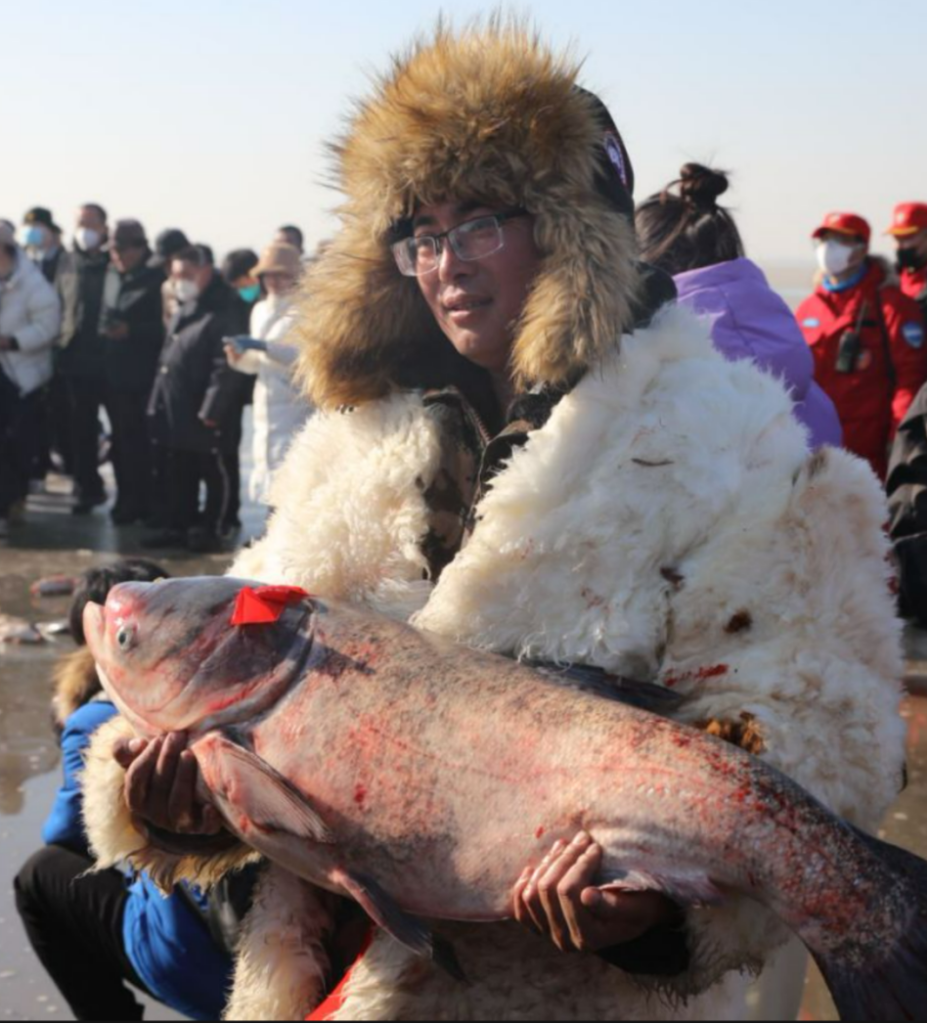 據了解,哈素海第一屆冰雪旅游節(jié),頭魚現(xiàn)場拍賣出6.8萬元的價格,2024年頭魚拍賣成交價為40.8萬元。