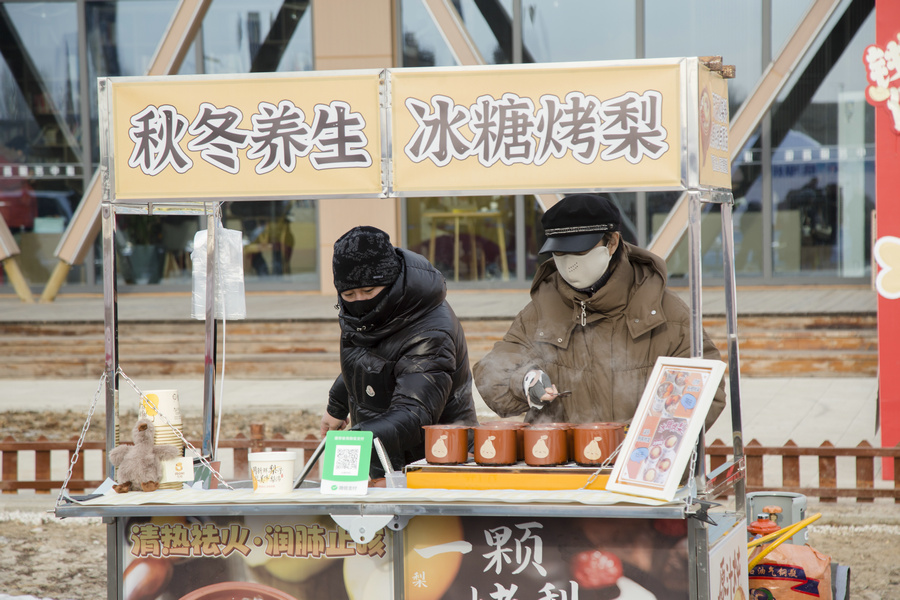 1月4日清晨,房車營地內(nèi)的暖冬造趣節(jié)現(xiàn)場游客在排隊領(lǐng)取免費奶茶