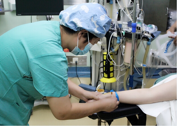 剛來到手術(shù)室,她根據(jù)科室的工作特點,發(fā)現(xiàn)作為以婦產(chǎn)科為龍頭科室的醫(yī)院來說,急診搶救的時候非常多,而在這種情況下,術(shù)中采血顯得非常重要,既能讓醫(yī)生實時根據(jù)化驗結(jié)果的提示,制定搶救計劃,又能為搶救的效果提供臨床依據(jù)。所以巡回護士的采血技能尤為重要,根據(jù)這一情況,護士長決定開展動脈置管術(shù)。提前將留置針置于動脈內(nèi),術(shù)中需要采血做化驗檢查時,從置管處直接抽取血液,這樣既能省略護士穿刺找血管的時間,又能及時將血標(biāo)本送檢,為搶救治療提供保障的同時節(jié)約了時間。但是需人人在短時間內(nèi)掌握這一新技術(shù)。