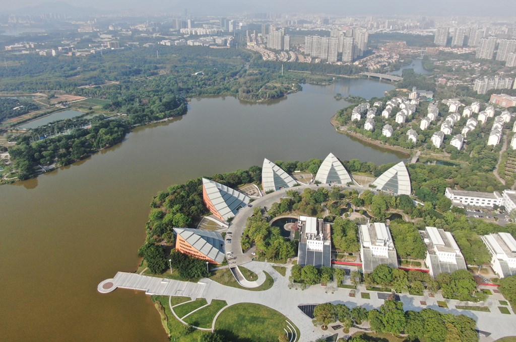 這是東莞松山湖風(fēng)景(2021年4月21日攝,無人機照片)。
