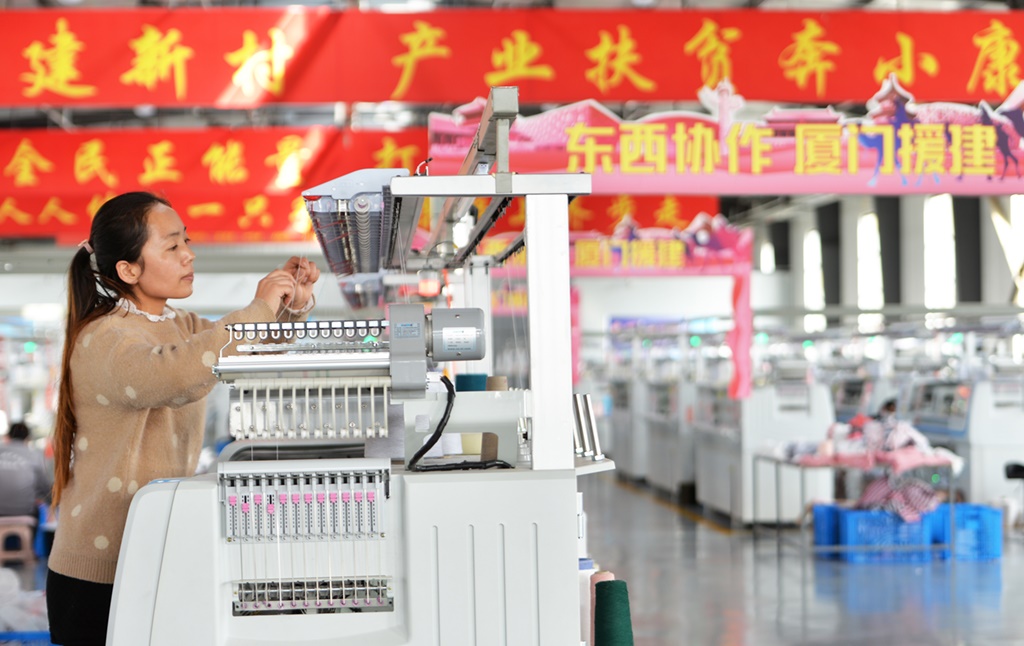 近年來,在東西部扶貧協(xié)作機制下,福建省廈門市幫助甘肅省臨夏回族自治州引進服裝鞋帽、戶外用品、文化旅游、農(nóng)產(chǎn)品深加工等企業(yè),吸納當(dāng)?shù)剞r(nóng)民就地就近就業(yè)。新華社發(fā)(史有東 攝)