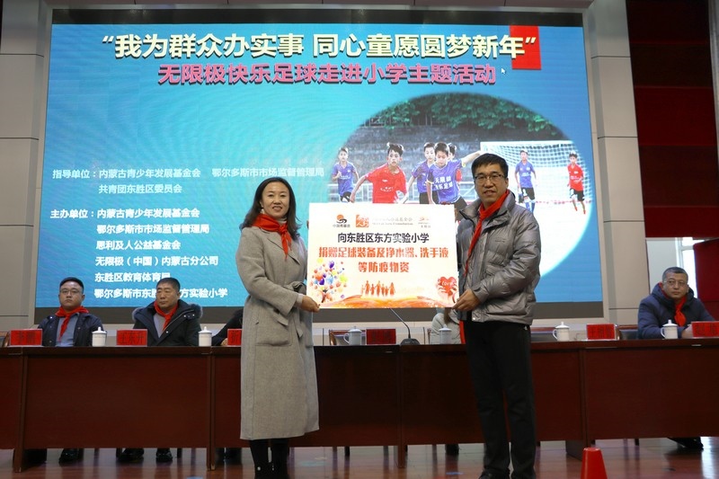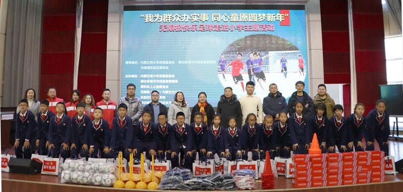 北疆新聞網(wǎng)、北疆新聞APP、北疆云消息 12月3日,思利及人公益基金會(huì)、無(wú)限極(中國(guó))內(nèi)蒙古分公司攜手內(nèi)蒙古青少年發(fā)展基金會(huì)、鄂爾多斯市市場(chǎng)監(jiān)督管理局、共青團(tuán)東勝區(qū)委員會(huì)、東勝區(qū)教育體育局、無(wú)限極內(nèi)蒙古志愿者協(xié)會(huì)走進(jìn)內(nèi)蒙古鄂爾多斯市東勝區(qū)東方實(shí)驗(yàn)小學(xué),開(kāi)展“我為群眾辦實(shí)事 同心童愿圓夢(mèng)新年”無(wú)限極快樂(lè)足球慰問(wèn)公益活動(dòng)。為學(xué)校的孩子們送上了一份特別的禮物,由“無(wú)限極快樂(lè)足球”公益項(xiàng)目提供的足球、球服、球鞋、繞桿、訓(xùn)練桶等足球裝備和訓(xùn)練器材。孩子們?cè)谑盏骄栀?zèng)后,露出開(kāi)心燦爛的笑容。