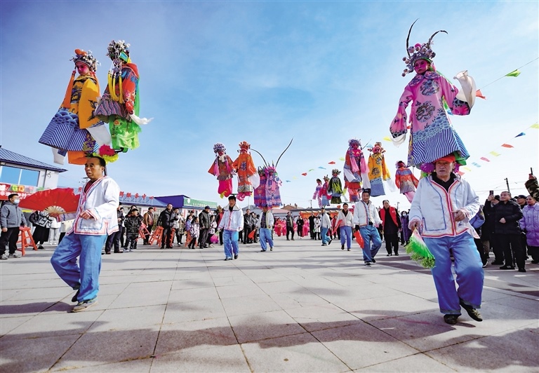 2月14日,在呼和浩特市土左旗畢克齊鎮(zhèn)臘鋪村文化廣場上,秧歌扭起來,鑼鼓敲起來,腦閣也款款擺起來。腦閣是國家級非物質文化遺產,扛閣的人在行走中踏著鼓點,通過身體搖動帶動架子上的孩子擺起來,極具觀賞性。(記者 鄭學良 通訊員 楊鑫 )