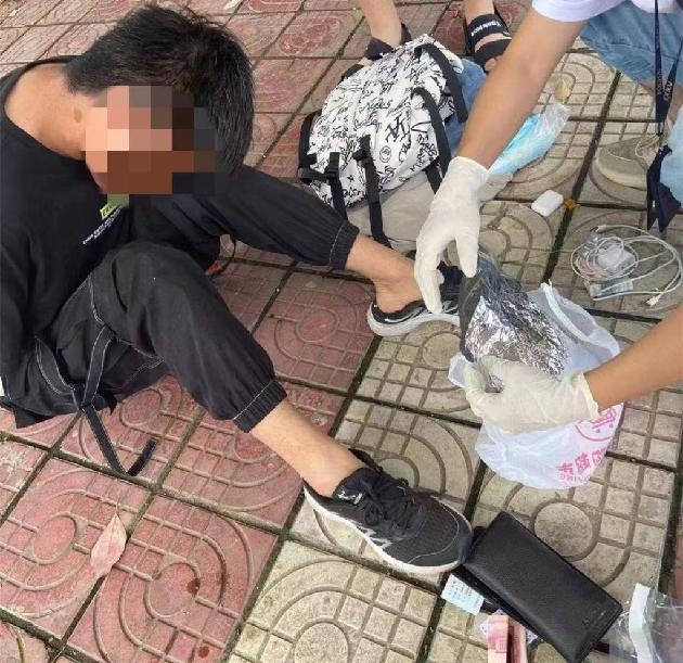 民警抓捕犯罪嫌疑人后,當(dāng)場(chǎng)查獲的一包冰毒。(受訪單位供圖)