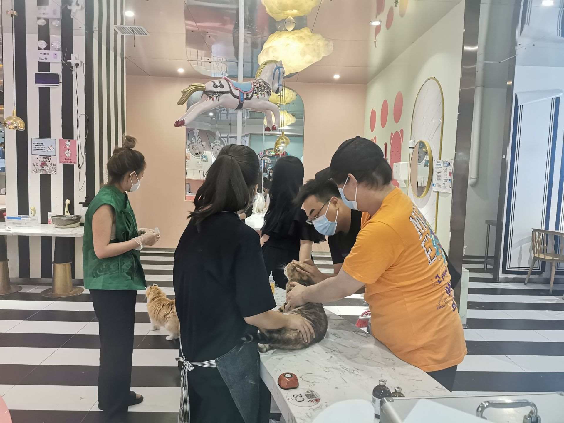 7月4日下午,記者來到店內(nèi),只見店內(nèi)供電已恢復,屋內(nèi)窗明幾凈,完全無異味,室內(nèi)環(huán)境大為改觀,志愿者團隊們在店內(nèi)忙碌打掃,對貓咪們進行體檢、滴藥、梳毛,現(xiàn)場井然有序,貓咪的狀態(tài)明顯活躍很多。
