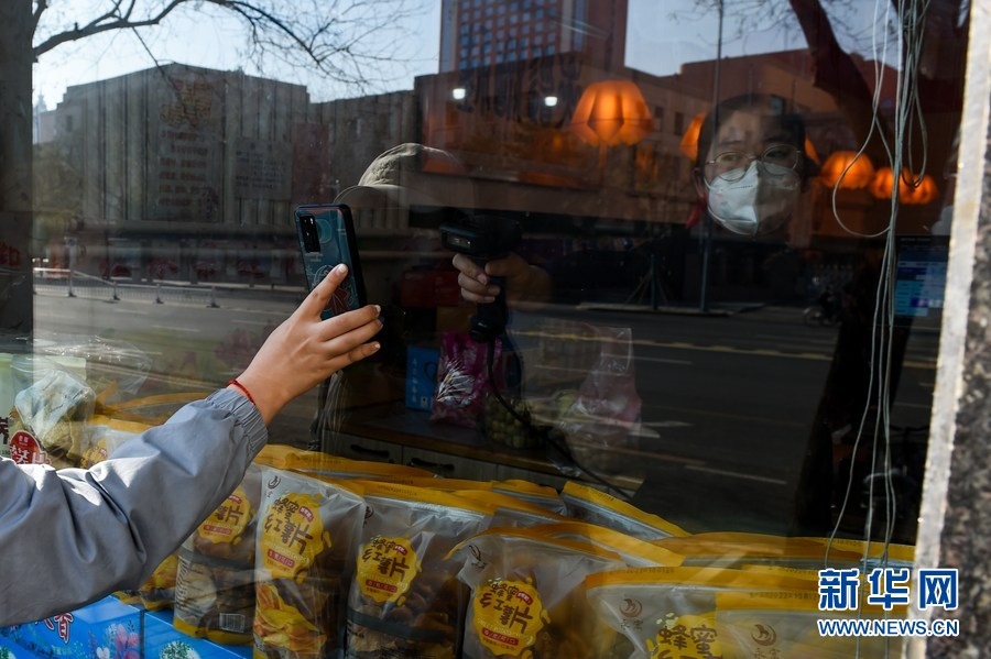 11月17日,市民在呼和浩特市新城區(qū)一家商店進(jìn)行無(wú)接觸購(gòu)物。新華社記者 王澤聰 攝
