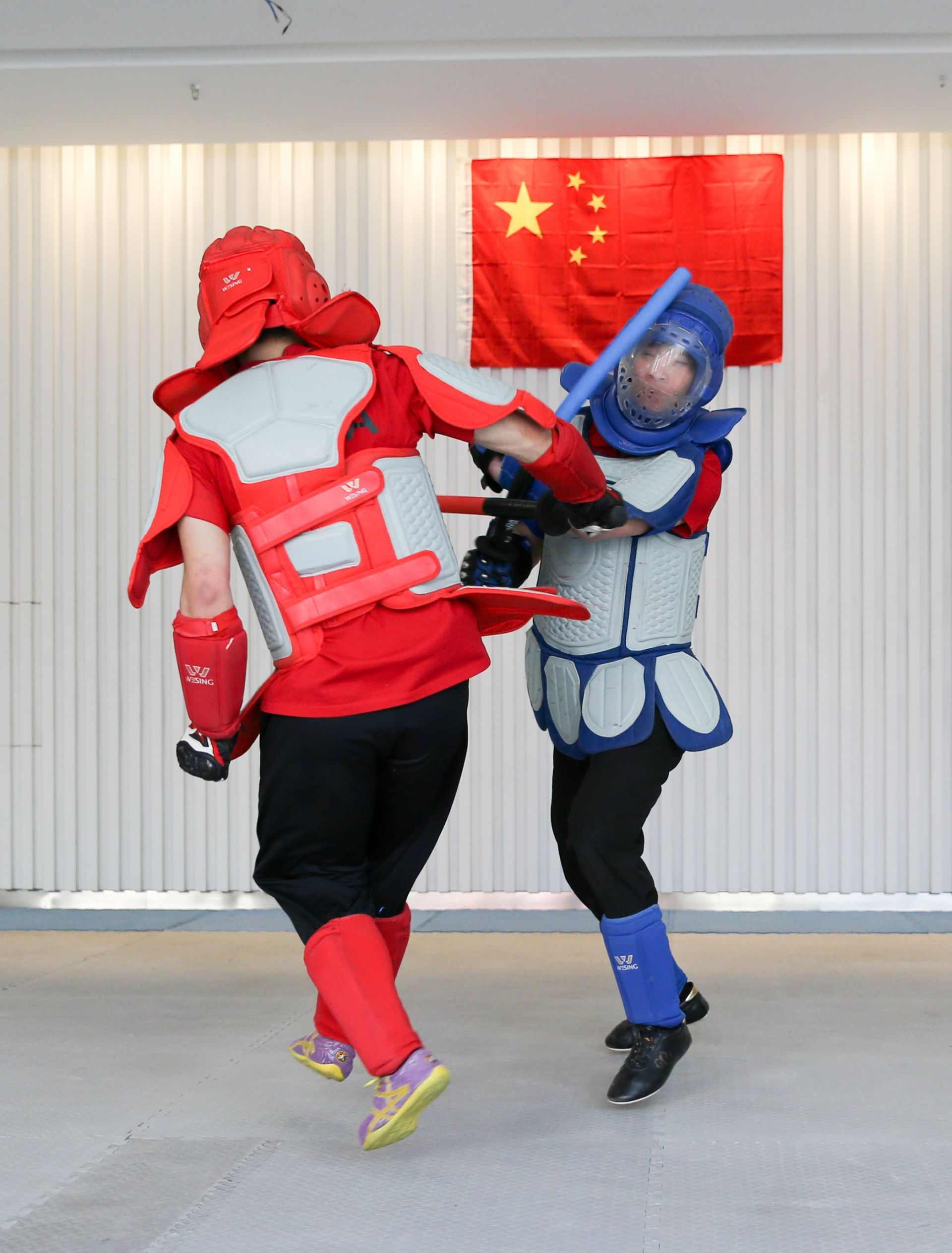 隊(duì)員手持一柄海綿包裹的短劍,時(shí)而閃躲騰挪,時(shí)而沖刺進(jìn)攻,動作行云流水。一招一式間盡顯力量和速度之美,相互對抗擊打時(shí)發(fā)出“啪啪”的聲響更是令人熱血沸騰……如果說哪一項(xiàng)運(yùn)動能夠滿足人們對俠客的終極幻想,非武術(shù)兵道莫屬。3月21日,為備戰(zhàn)全國武術(shù)兵道錦標(biāo)賽,內(nèi)蒙古唯一一支武術(shù)兵道隊(duì)在呼和浩特市體育運(yùn)動學(xué)校展開訓(xùn)練。