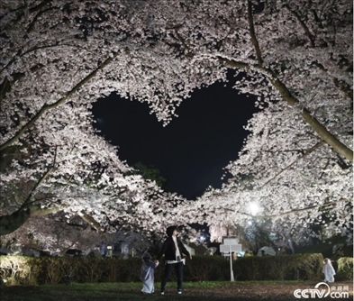 當(dāng)?shù)貢r間4月15日,日本青森縣弘前市弘前公園的櫻花進(jìn)入盛開季。其中,有兩株盛開的櫻花樹枝相互交織,在空中形成了一個愛心形狀,成為熱門觀光景點(diǎn)。