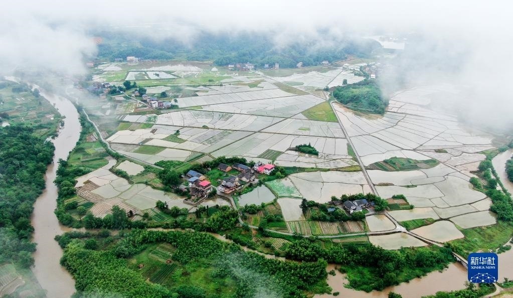 5月6日拍攝的湖南省資興市唐洞街道鏡塘村田園風(fēng)光(無人機照片)。