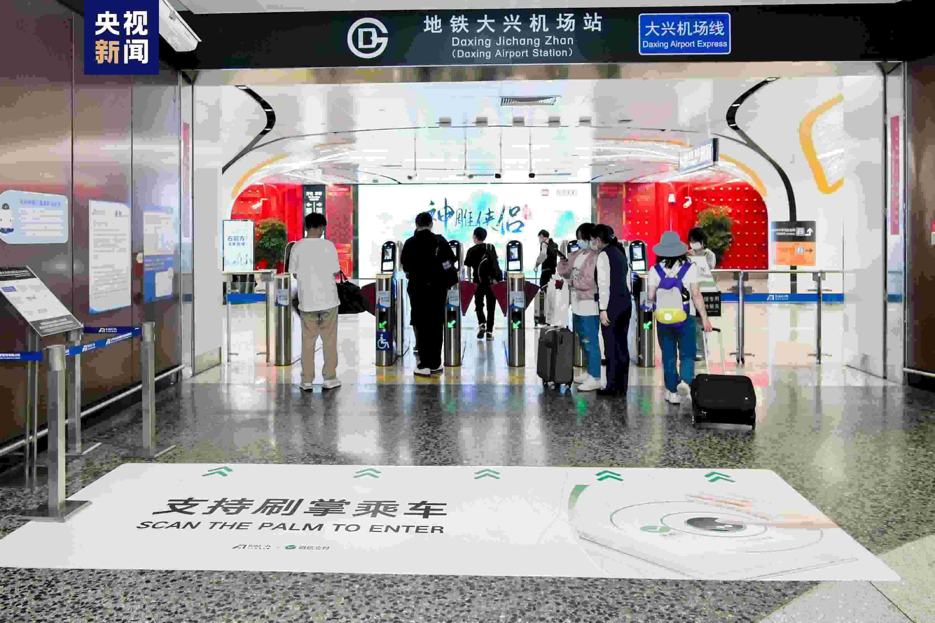 乘客不用拿卡,不用掏手機,依靠國內自主研發(fā)的掌紋生物識別技術就能進站乘坐大興機場線。乘客只需在進入地鐵前錄入“掌紋”,和自己的微信支付綁定,就可以快速進站,并實現(xiàn)刷掌支付。大興機場線成為世界首條生物識別掌紋支付技術應用的示范線。
