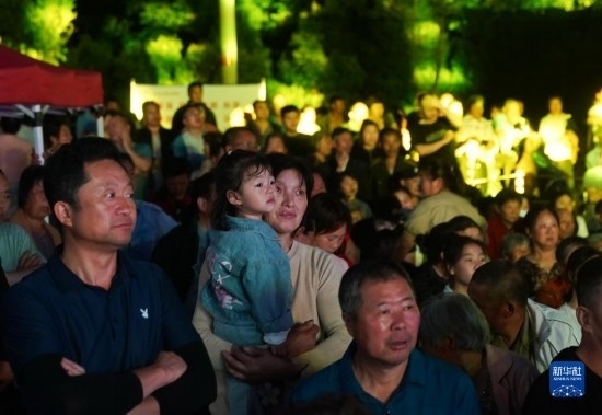5月28日,淮安市漣水縣保灘街道肖渡村村民在觀看表演。