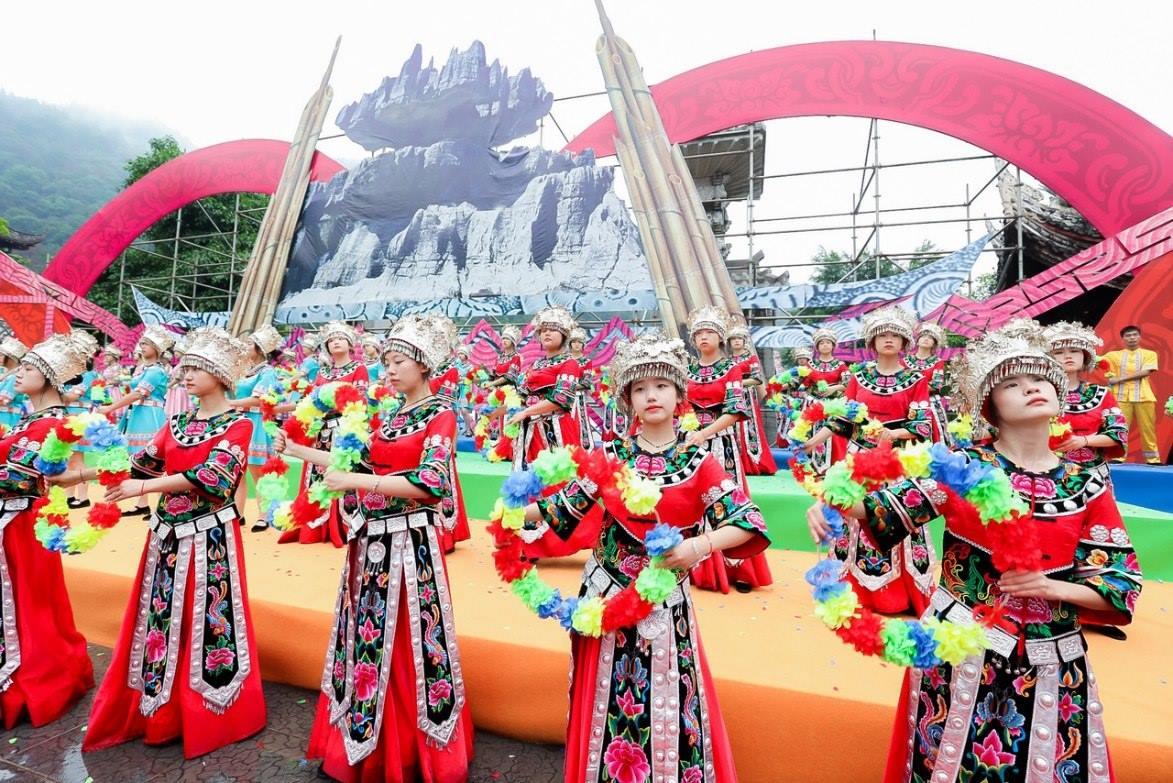 5月26日,2023第十二屆中國烏江苗族踩花山節(jié)在重慶彭水拉開序幕。上萬名苗鄉(xiāng)兒女身著節(jié)日盛裝聚集在這里,共跳踩花山、齊唱“嬌阿依”,現(xiàn)場一片歡樂的歌舞海洋,場面壯觀。