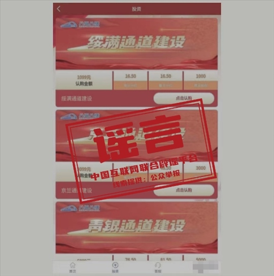 真相:近期,中國(guó)國(guó)家鐵路集團(tuán)有限公司接到群眾來(lái)電咨詢,反映一款名為“八縱八橫”APP程序自稱是國(guó)鐵集團(tuán)授權(quán)推出的理財(cái)產(chǎn)品,設(shè)有“呼南通道建設(shè)”“沿海通道建設(shè)”“京蘭通道建設(shè)”等9款投資理財(cái)項(xiàng)目,并將國(guó)鐵集團(tuán)公司簡(jiǎn)介、新聞報(bào)道等內(nèi)容在APP中用于宣傳推廣。對(duì)此,國(guó)鐵集團(tuán)發(fā)布嚴(yán)正聲明稱,國(guó)鐵集團(tuán)及所屬單位從未授權(quán)或利用其他網(wǎng)站、APP、微信公眾號(hào)、微博等形式以“國(guó)鐵集團(tuán)”或“中國(guó)鐵路”的名義銷售投資理財(cái)產(chǎn)品,也沒(méi)有通過(guò)這樣的方式籌集鐵路建設(shè)資金。不法分子利用“八縱八橫”APP程序所實(shí)施的行為和發(fā)布的內(nèi)容已涉嫌詐騙,請(qǐng)公眾提高警惕,謹(jǐn)慎區(qū)分,注意防騙。如已被騙,請(qǐng)立即向公安機(jī)關(guān)報(bào)案。(來(lái)源:“中國(guó)鐵路”微信公眾號(hào))
