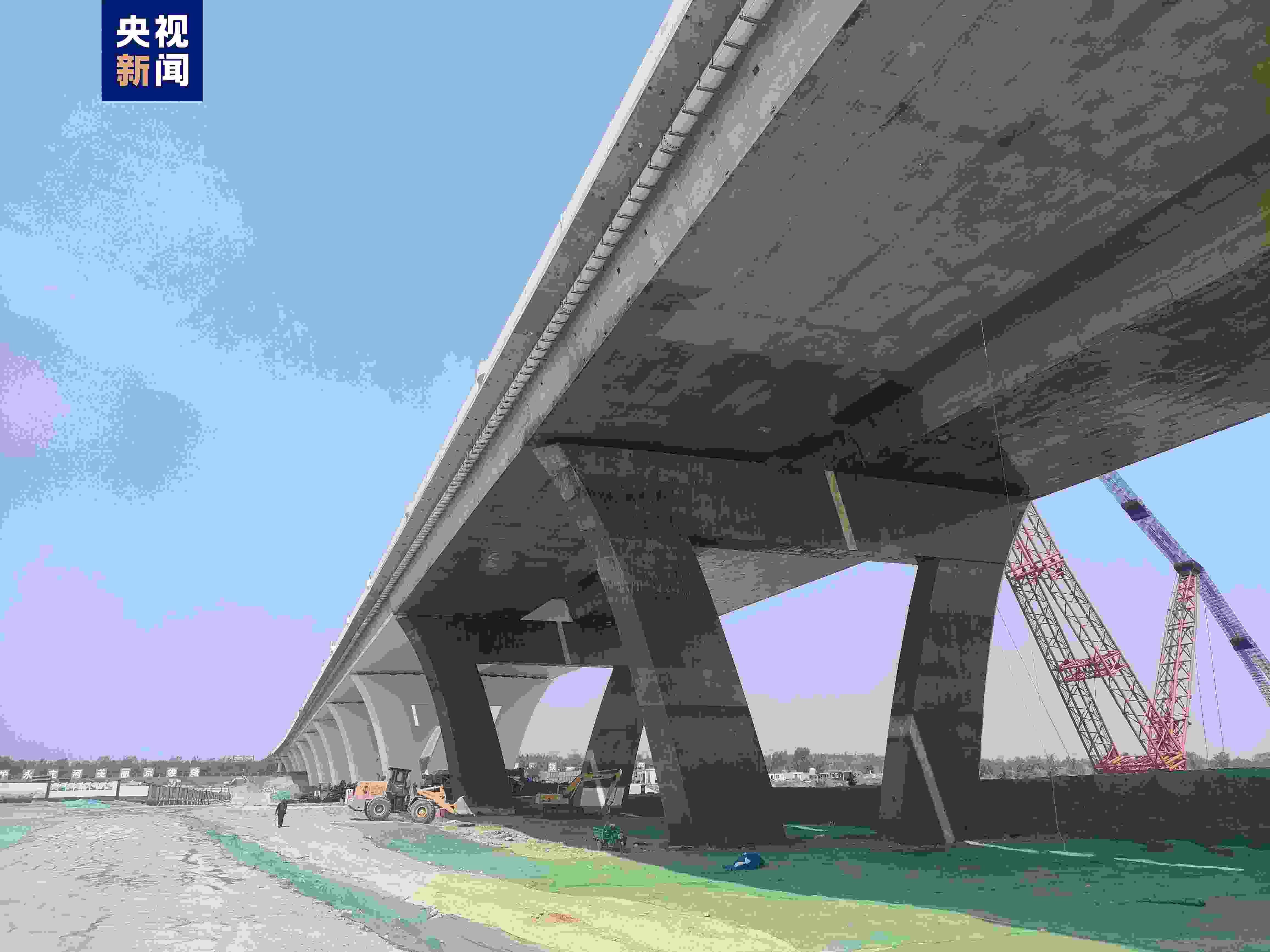 京雄大橋位于永定河與京雄高速“交匯點(diǎn)”,全長(zhǎng)1.62公里,其中東引橋410米、西引橋690米、主橋520米,主拱跨度達(dá)300米。大橋主梁寬度達(dá)48米,未來(lái)將承載京雄高速雙向八車道的車流。