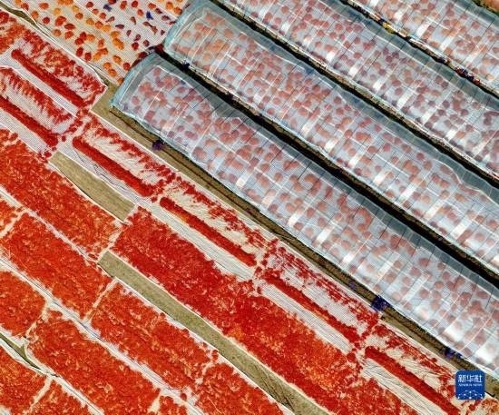 9月14日在安徽省亳州市譙城區(qū)雙溝鎮(zhèn)任小廟村拍攝的晾曬的辣椒。