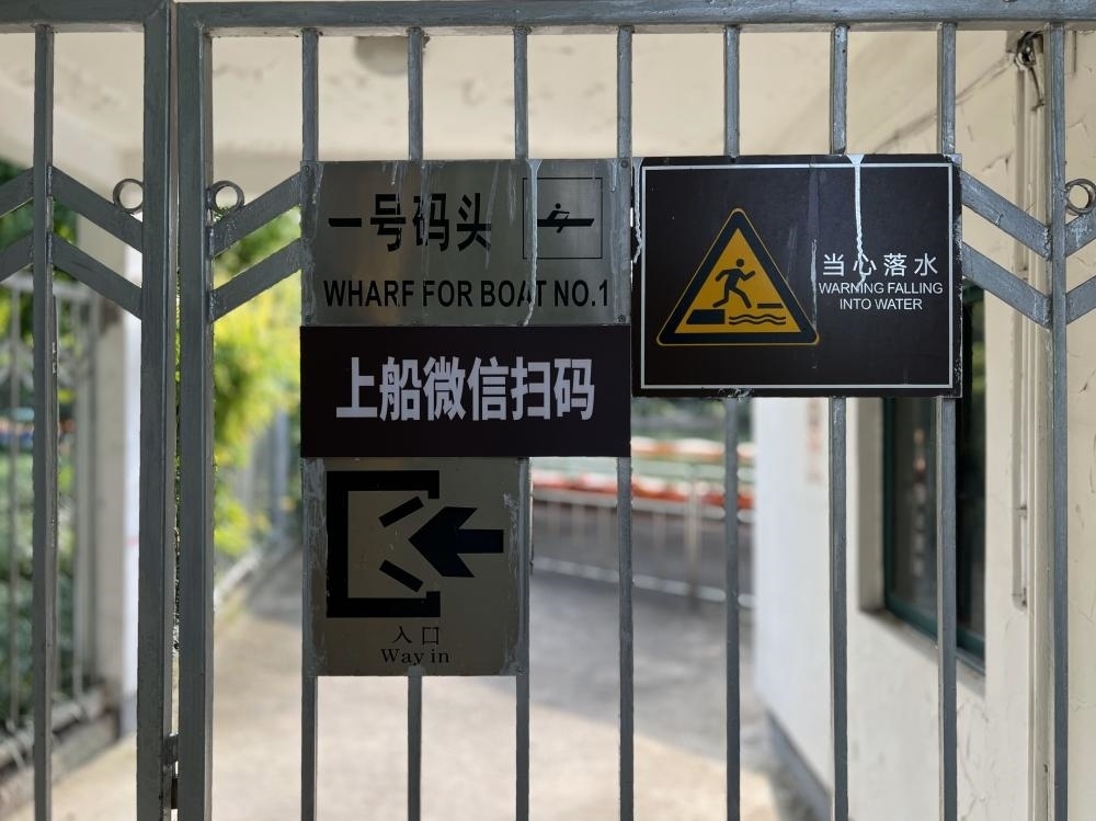 當(dāng)日下雨,乘坐游船的游客并不多,在工作人員的指導(dǎo)下都順利完成了購票??墒牵谌肆髁枯^大的晴天,不會使用電子支付的老人是否能得到及時(shí)的輔助?現(xiàn)金售票亭長時(shí)間無人在崗的情況下,市民又是否能使用現(xiàn)金購票呢?目前,碼頭工作人員給出了“我沒辦法收現(xiàn)金,要等售票員回到售票亭”的答復(fù)。