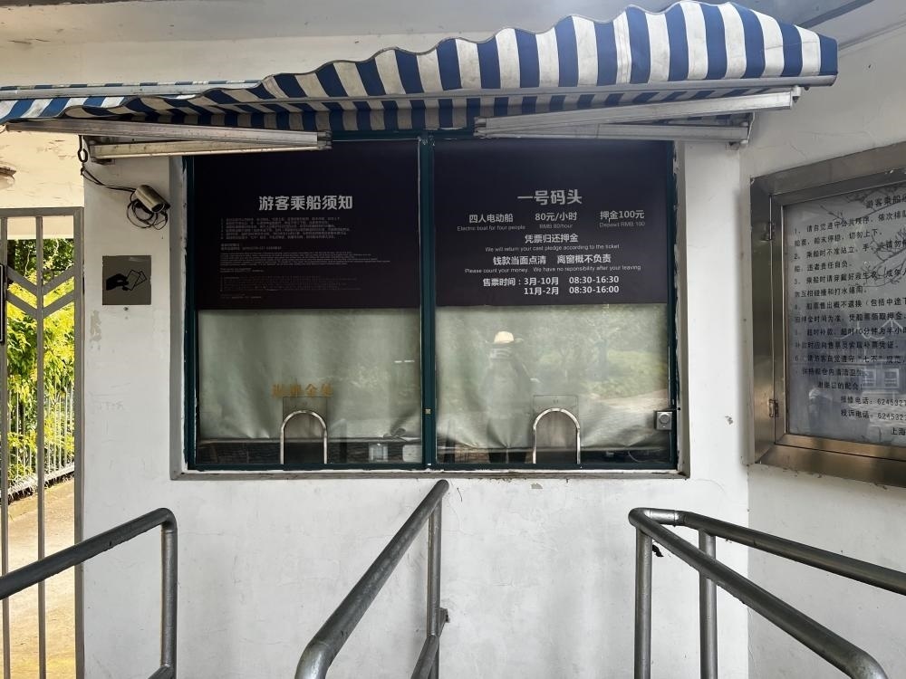 當(dāng)記者問起是否有現(xiàn)金購買渠道時(shí),工作人員指路了附近的人工售票窗口,同時(shí)補(bǔ)充道:“收受現(xiàn)金的售票員有時(shí)會離開崗位,不久會回來。”記者在此地停留了一小時(shí),注意到長風(fēng)公園內(nèi)類似的售票窗口有兩個(gè),營業(yè)至16:30。然而,整整一個(gè)小時(shí)內(nèi),兩個(gè)窗口均無人在崗。