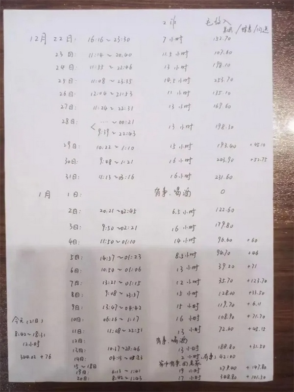 邢斌體驗(yàn)外賣(mài)員期間記錄的賬單